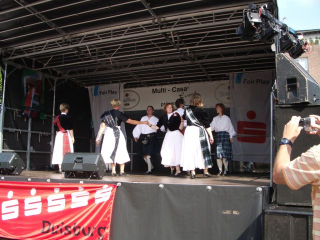 2.-4. September 2005: Folklore-Festival und U-Bahn-Fest in Duisburg-Meiderich. Wir bereichern das traditionelle Folklore-Festival mit unserem "Ceili(dh)" im Centrum Westende am 2. September. Drei Stunden haben neugierige Mitbürger Gelegenheit, einfache schottische und irische Tänze auszuprobieren. Am 4. September präsentieren viele Folklore-Tanzgruppen aus dem westlichen Ruhrgebiet Folklore aus aller Welt. Mit dabei sind wie immer die "Swinging Kilts" und "Celtic Feet". Doch in diesem Jahr leidet das Festival an den vielen parallel laufenden Angeboten in der Umgebung.